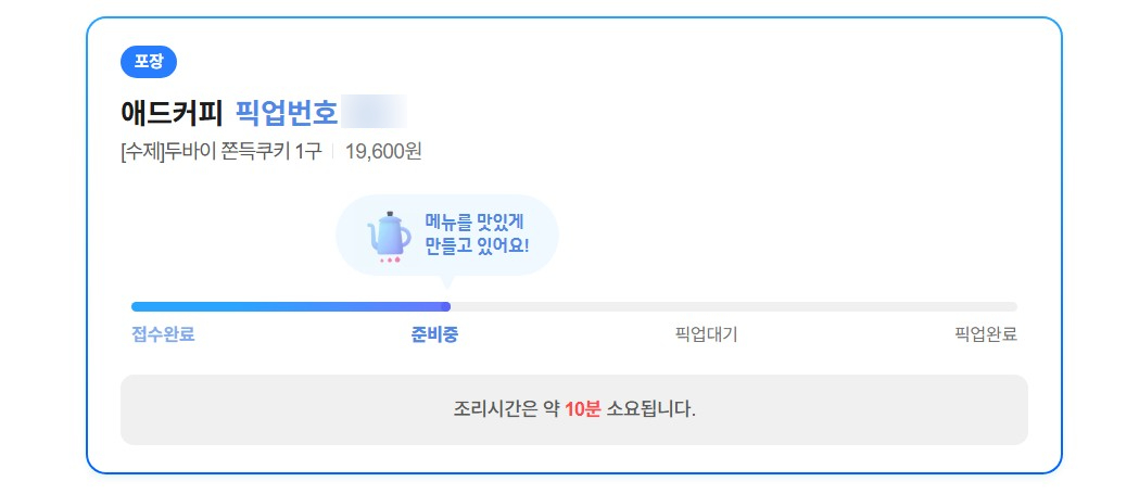 픽업 주문을 하고 스크린샷을 보낸뒤에야