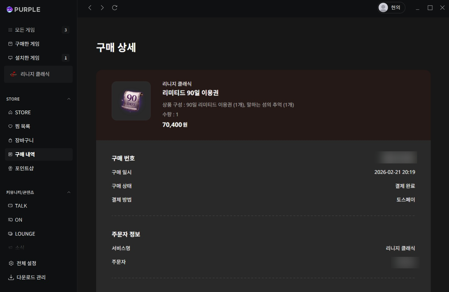 퍼플을 설치하고 게임 검색에서 리니지 클래식을 검색해서 설치했다.