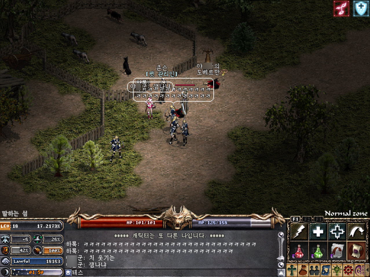 사냥터와 펫 관리인 앞에서 일부러 펫을 공격해 죽이는
