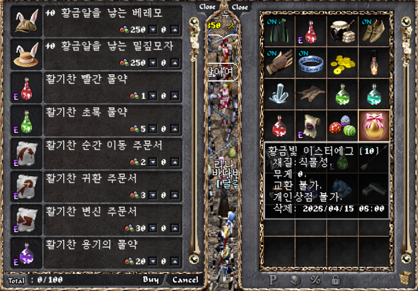 26.04.01 리니지 클래식, 이벤트 물약들과 아이템이 사라졌다.