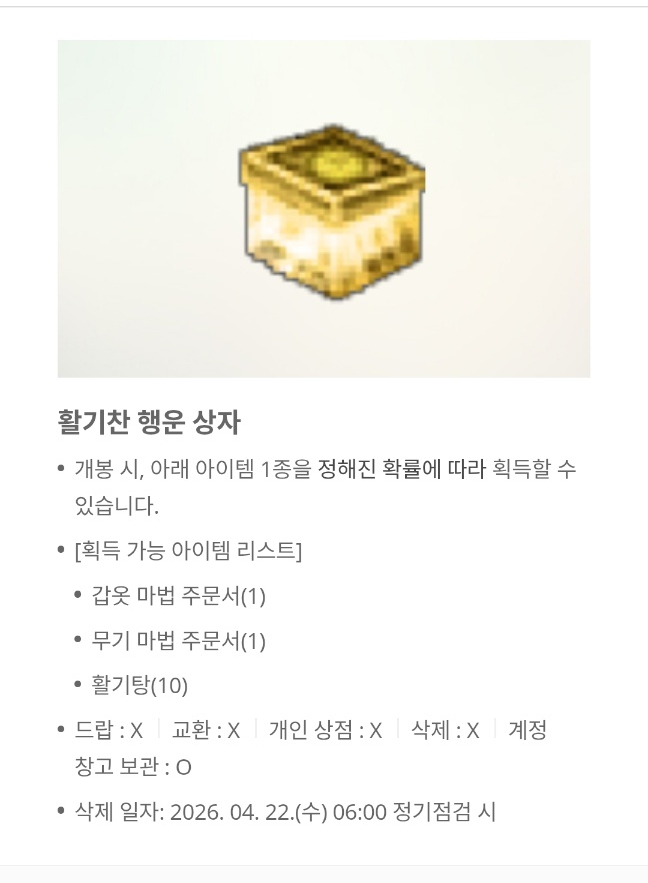 캐쉬템 상자에서 나온 물약과 활기탕은 6월4일 점검이후 삭제되니