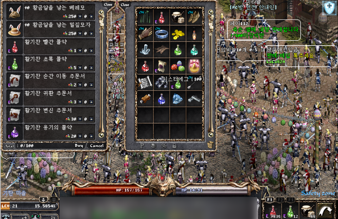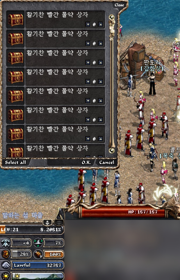 4월1일 만우절날 이벤트도 참여하고, 물약 상자도 사서 가지고 있던 무게 0 의 물약들과 아이템이 사라졌다. 빨간 물약, 변신 주문서, 엘븐 와퍼... 아껴 쓰려고 아데나로 구매한 아이템부터 쓰고