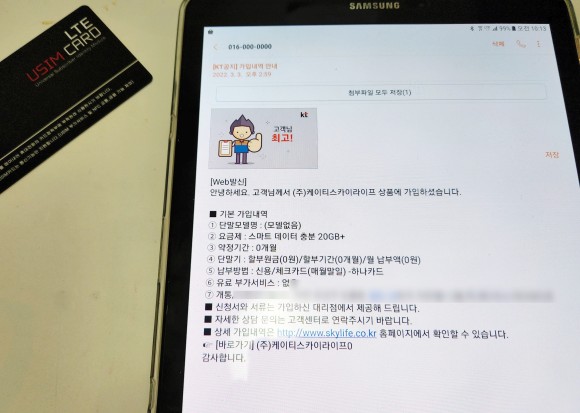 데이터 나눠쓰기 요금제 정도의 비용으로 별도의 분리된 상품으로 사용할수 있다는 강점을 가진 스카이라이프의 "스마트 데이터 충분" 알뜰 USIM 요금제~!