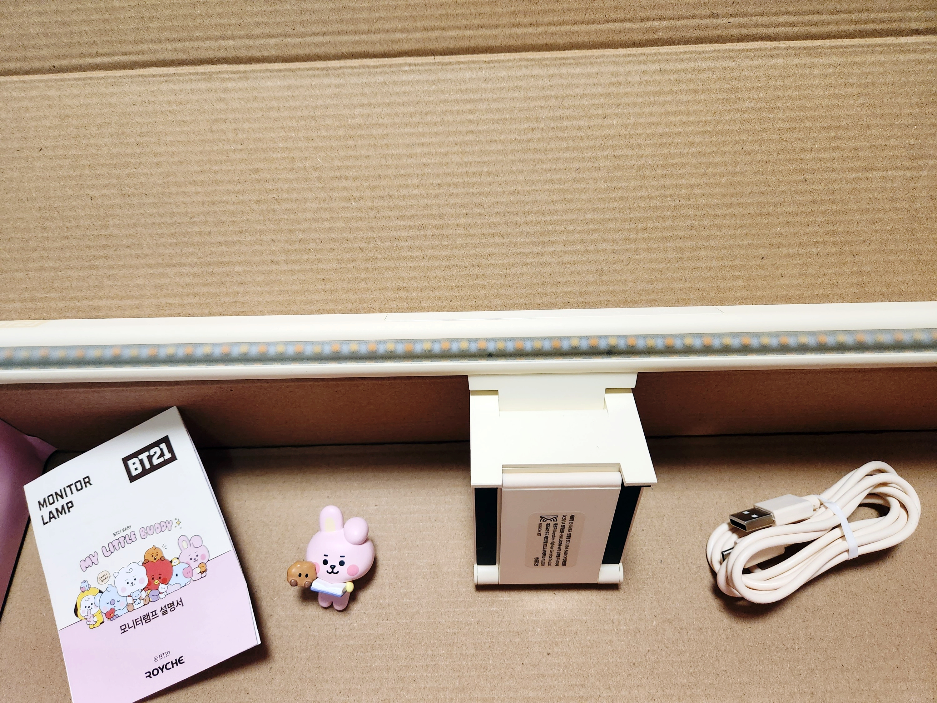 구성품은 설명서, 모니터 램프 본품, 충전 케이블, 피규어가 들어있습니다.