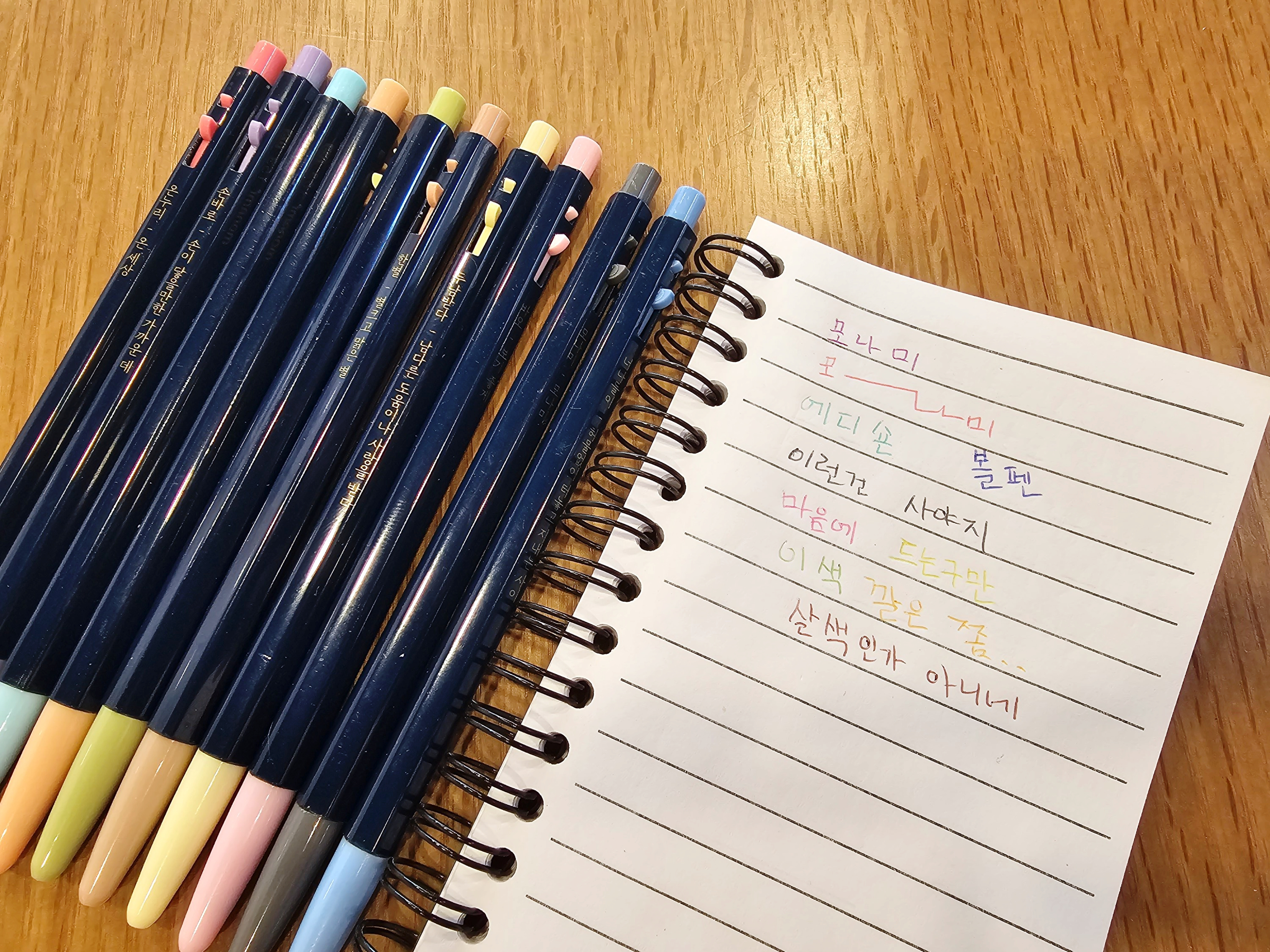 에쁘고 정다움 이라는 의미의 순 우리말 예다움, 10색 볼펜