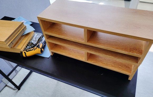 콜린 모니터 받침대에서 3단 선반을 제외한 모니터 받침대만 완성되었습니다.
