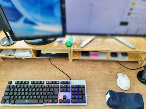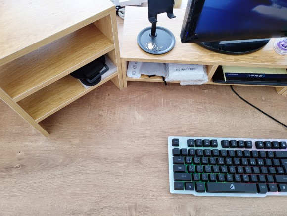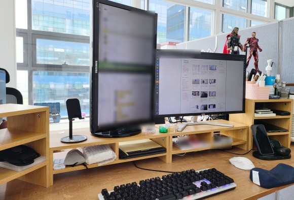 새 사무실로 이전했는데 이전 모니터 받침대로 책상위를 꾸미려니..