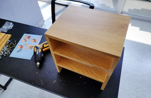 남은 목재판 하나를 남은 C타사를 구멍에 맞춰서 조립하면 끝입니다.