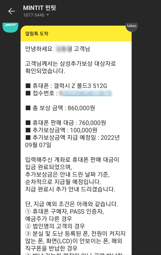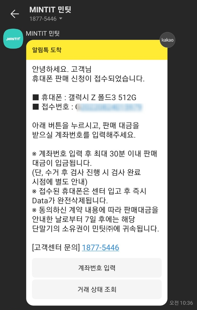 사전에 미리 체크했던 민팃 특별 보상 가격에 아쉬움이 있었지만,
