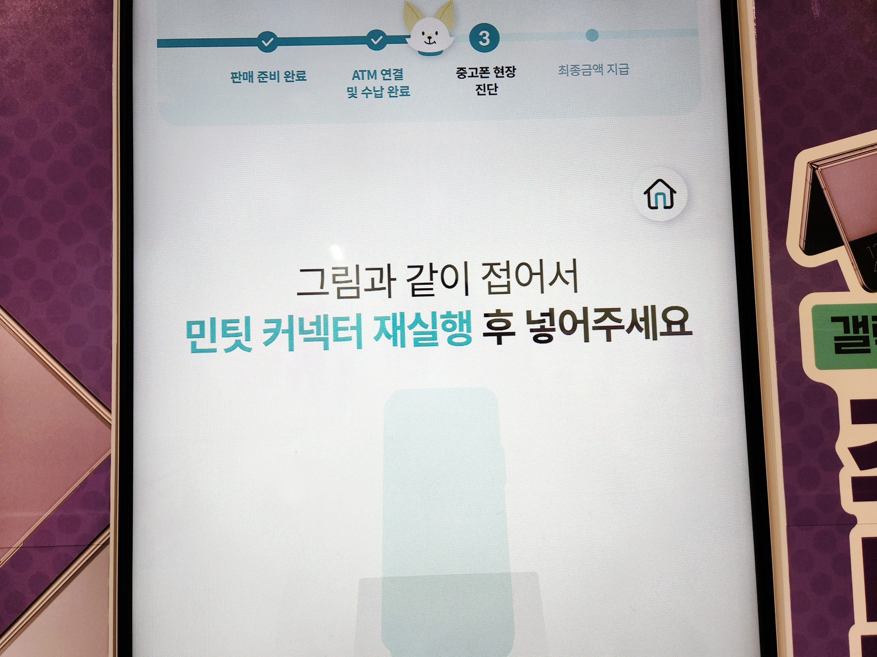 미리 폰을 초기화 하고, 민팃 커넥터를 설치하고 방문했습니다.