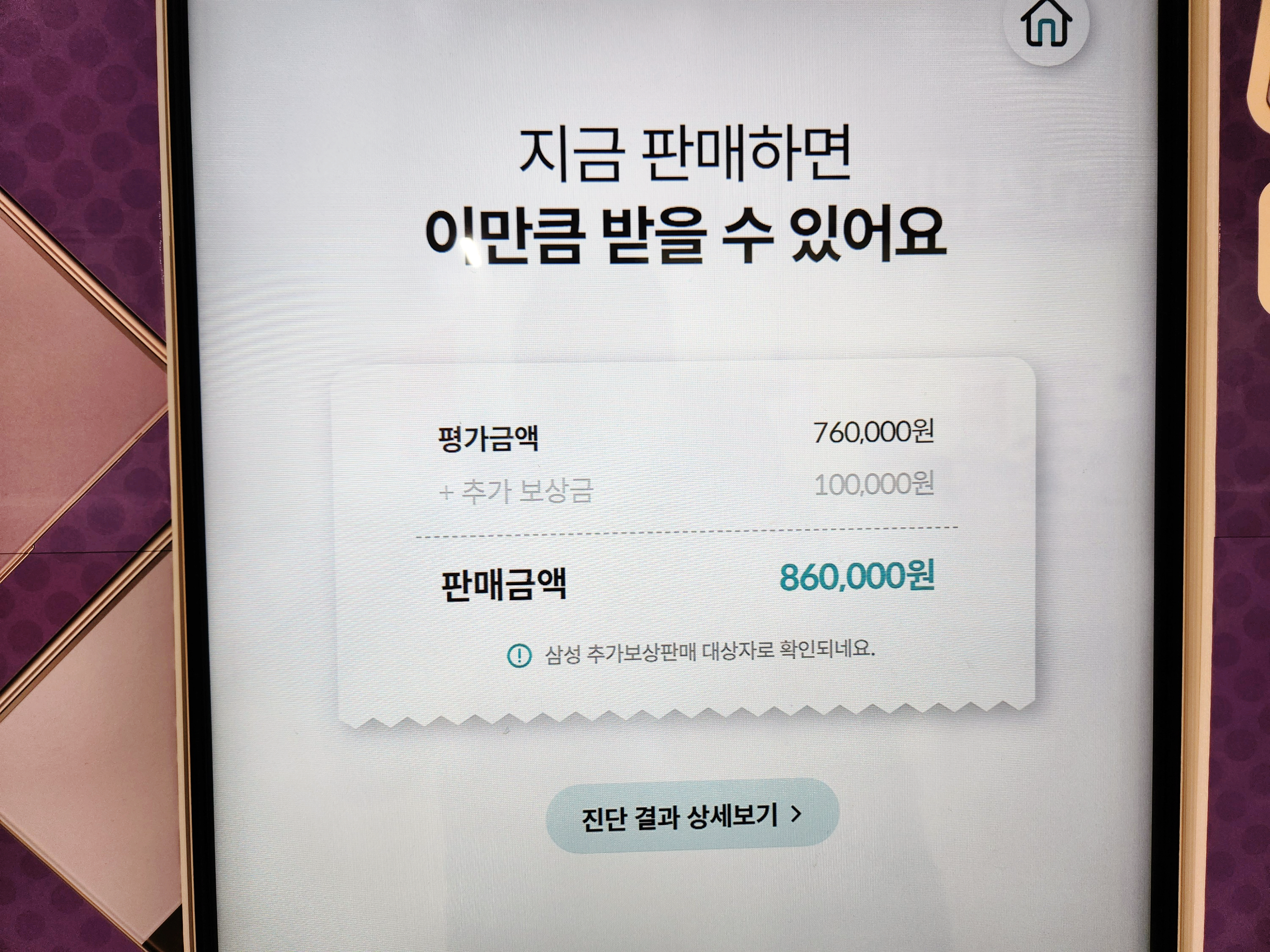 B급 판정 76만 / 특별 보상금 10만 이 측정됐습니다.