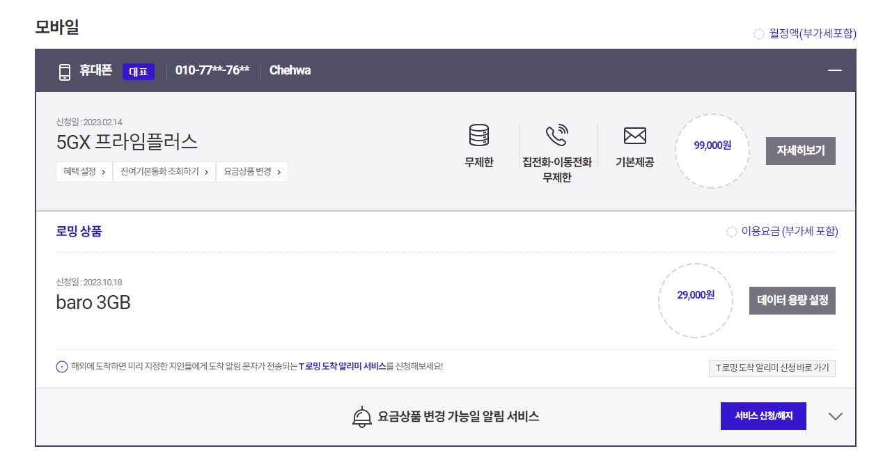 자주 해외에 나가는 분들에게는 괜찮은 요금제 상품인 것 같다.