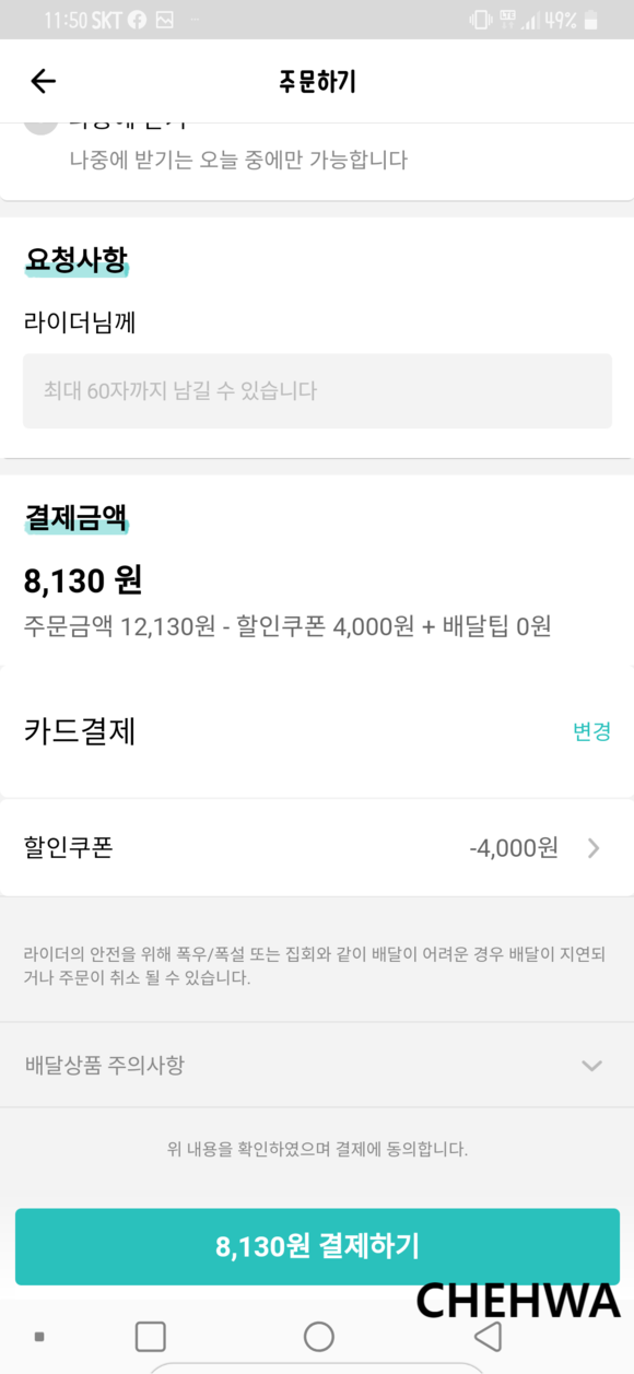 배달 기사님의 성함까지 배달 현화에서 확인할수 있었습니다.