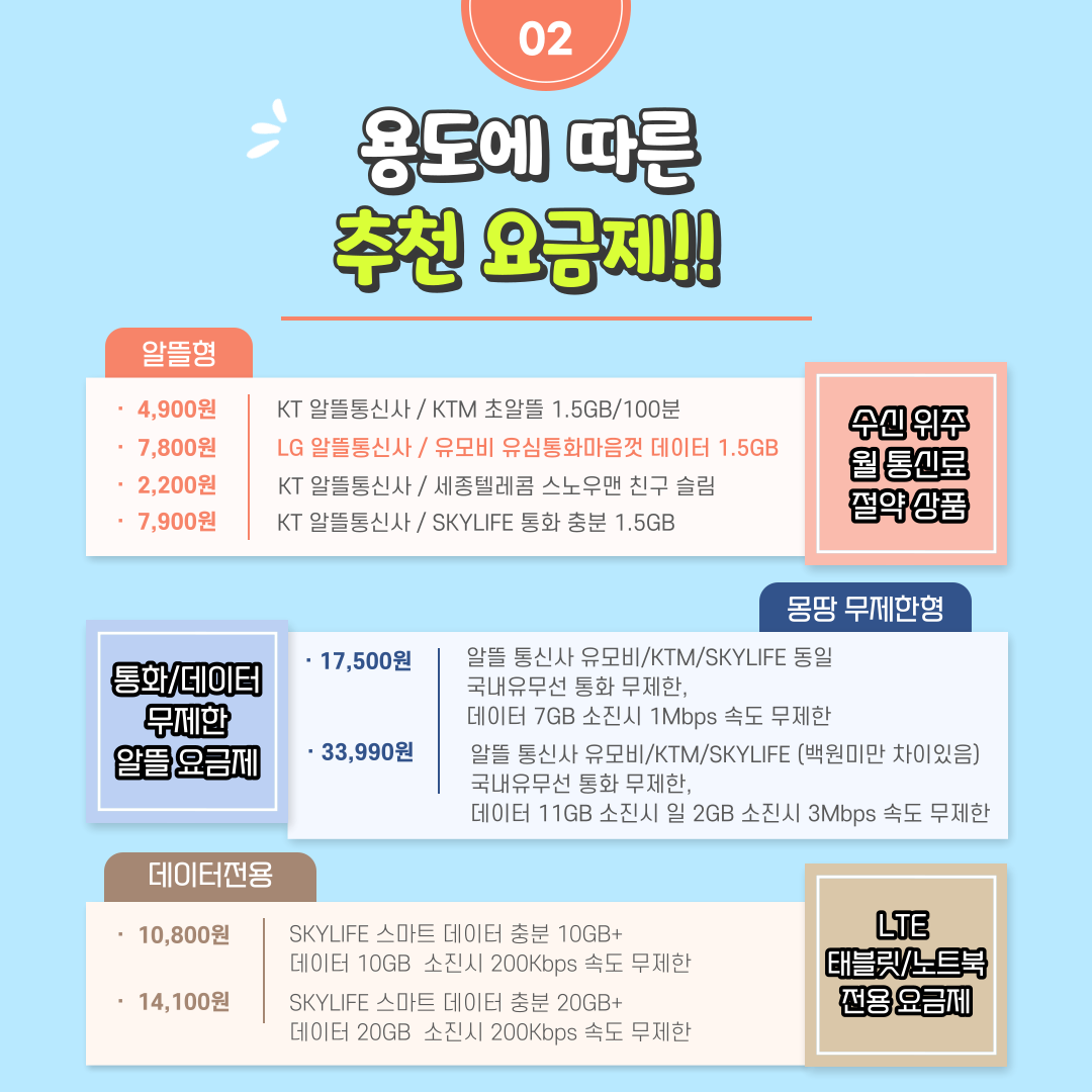 인터넷과 알뜰 USIM 요금제 등 가성비 있는 상품들도 가입할수 있지만