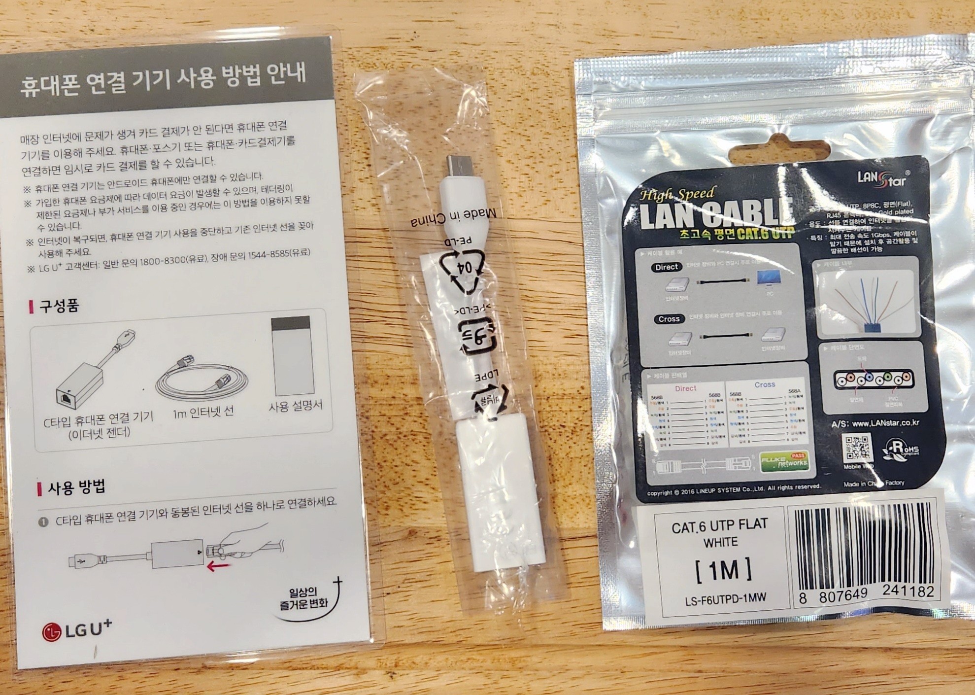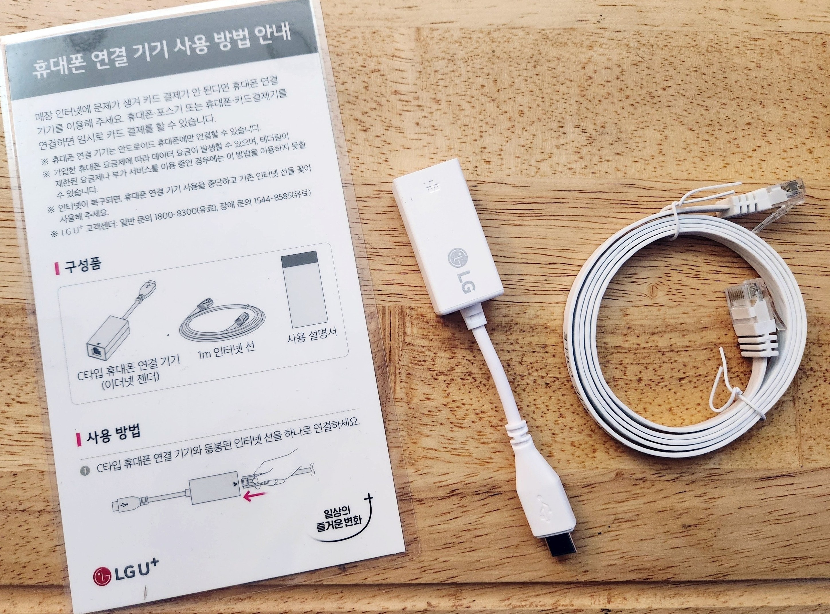 간단 설명서 / C타입 휴대폰 연결기기 (이더넷 젠더) / 1M 랜선이 들어있네요.
