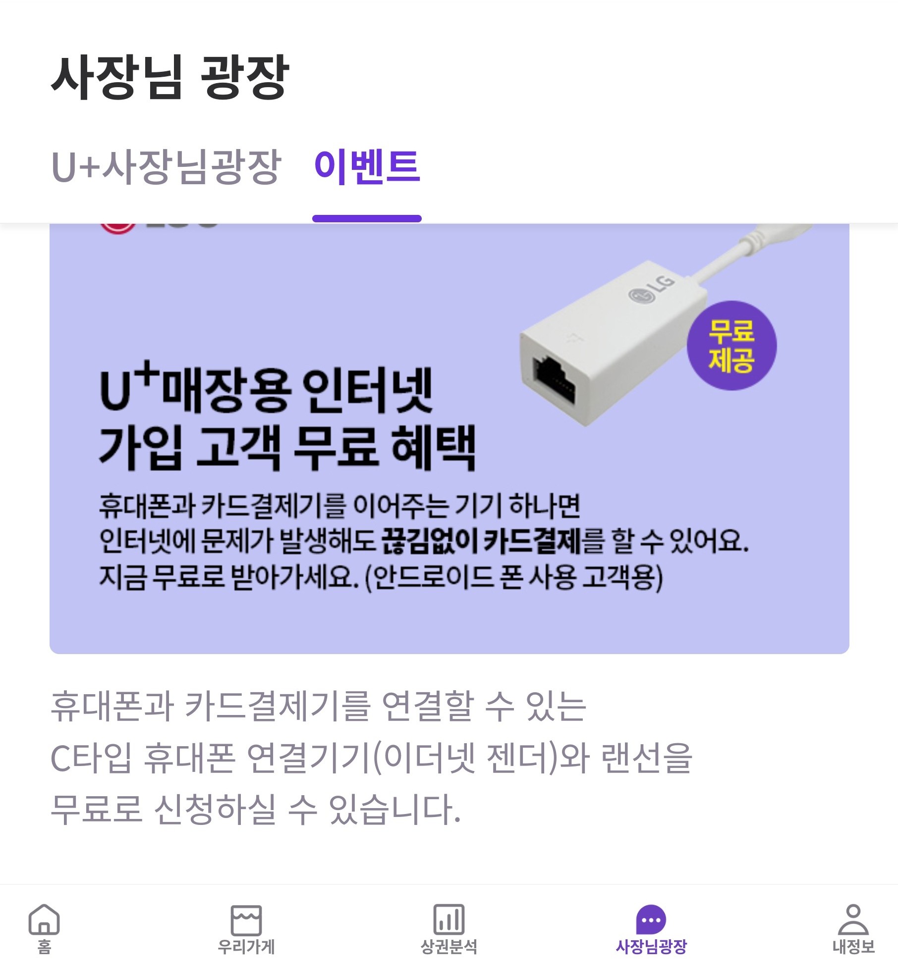 유플러스 소상공인 관련 상품을 이용중이시라면~ 해당 혜택도 신청해보세요~!