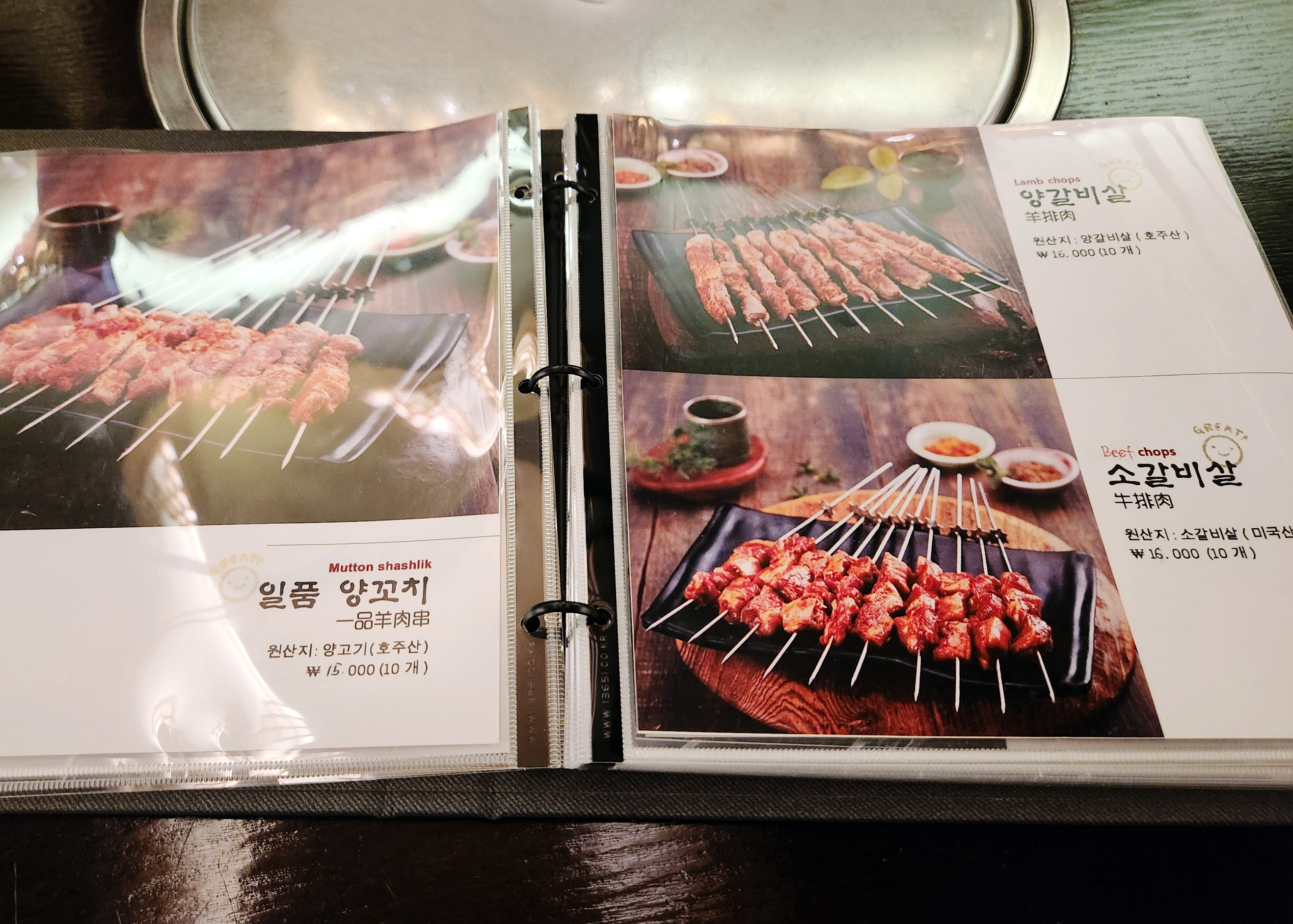 양꼬치 맛이 만족스러워서 메뉴판을 다시 펼쳤습니다.