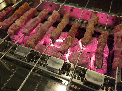 꼬치가 회전하면서~ 골고루 익습니다. ㅎㅎ