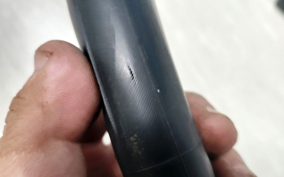 터진 튜브를 꺼내어 확인해보니 레버의 둥근 부분에 쓸린 자국이 보이더라구요.