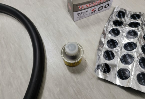 수리 마무리로 펑크난 튜브 총 3개를 펑크패치를 다 붙히고 마무리했습니다. ㅎㅎ