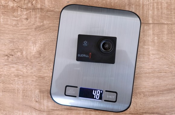 배터리가 장착된 액션캠의 무게는 약 48g 입니다. 정말 가볍습니다.