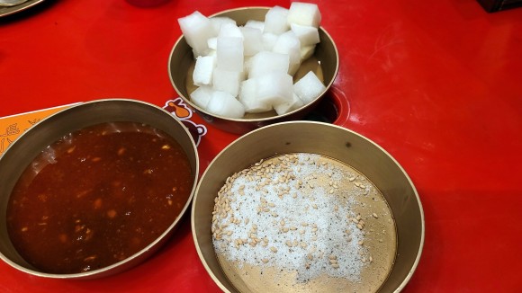 오픈 첫날이라 메뉴 순환이 조금 오래 걸리는듯 했습니다. 가게에 반 정도가 차있었는데, 이전 두 테이블 정도가 메뉴가 밀려있었습니다.