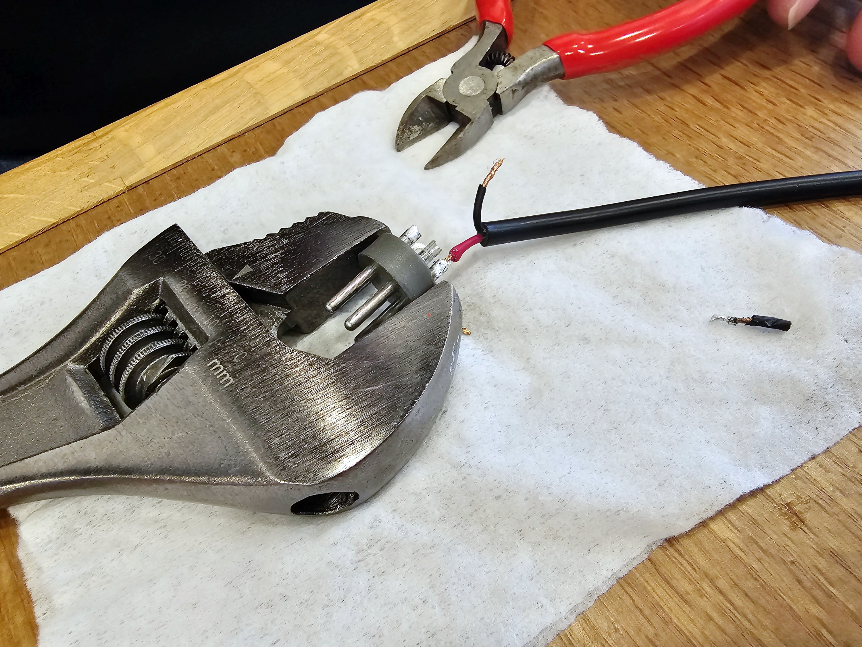 스패너로 고정시킨후 인두기로 지직~