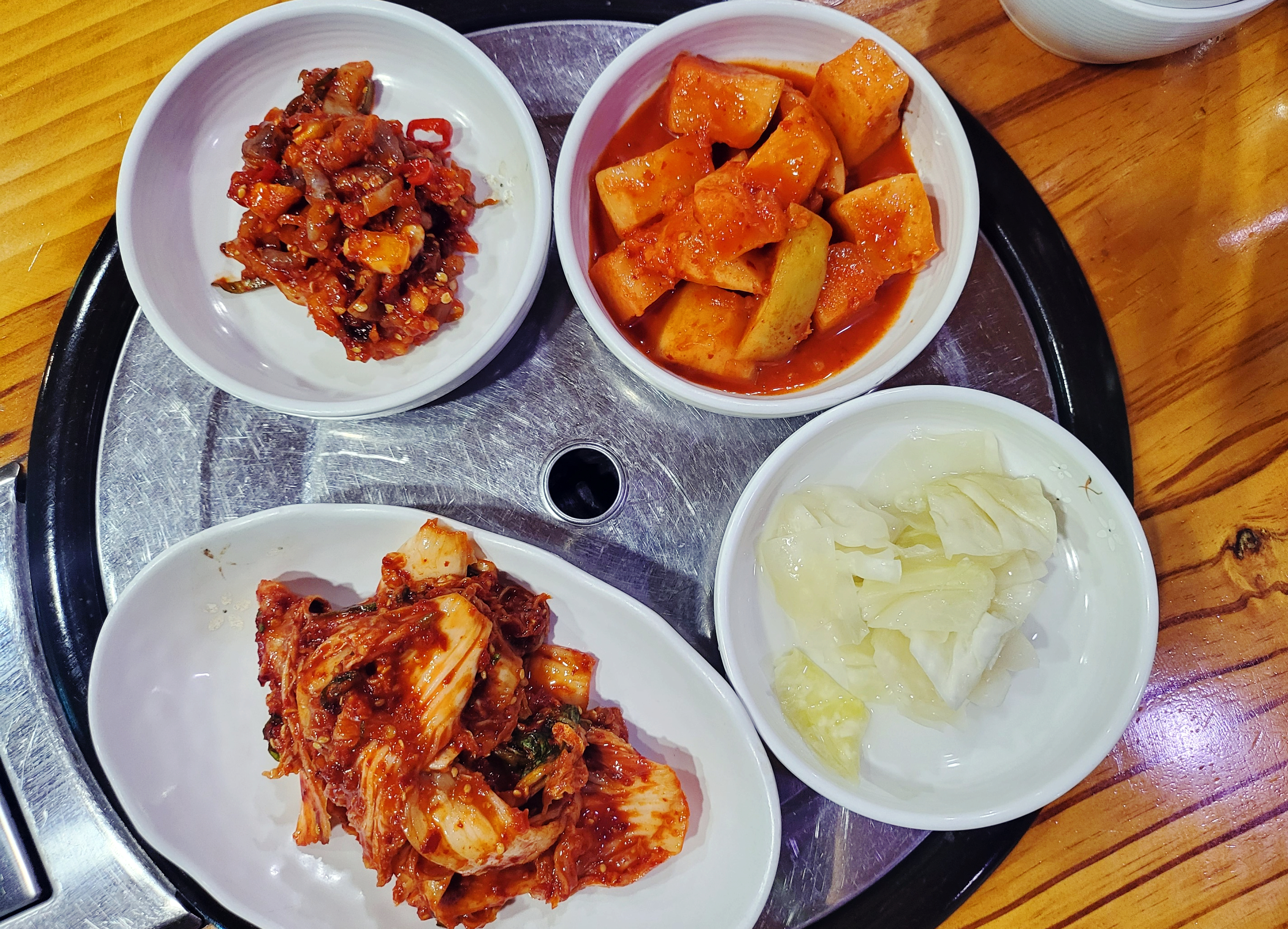 기본 찬중에 메인인 겉절이를 제외하고도 배추절임, 젓갈, 깍두기가 있습니다.