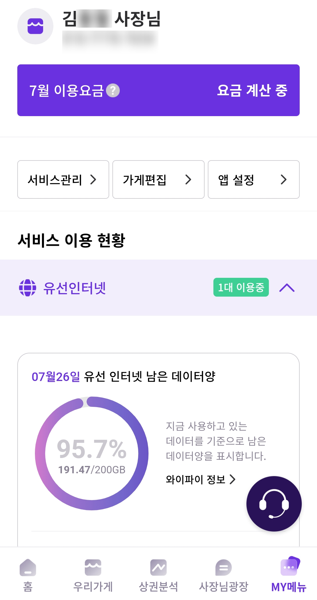 저만 사용하는 광랜선이 매장까지 연결됐습니다.