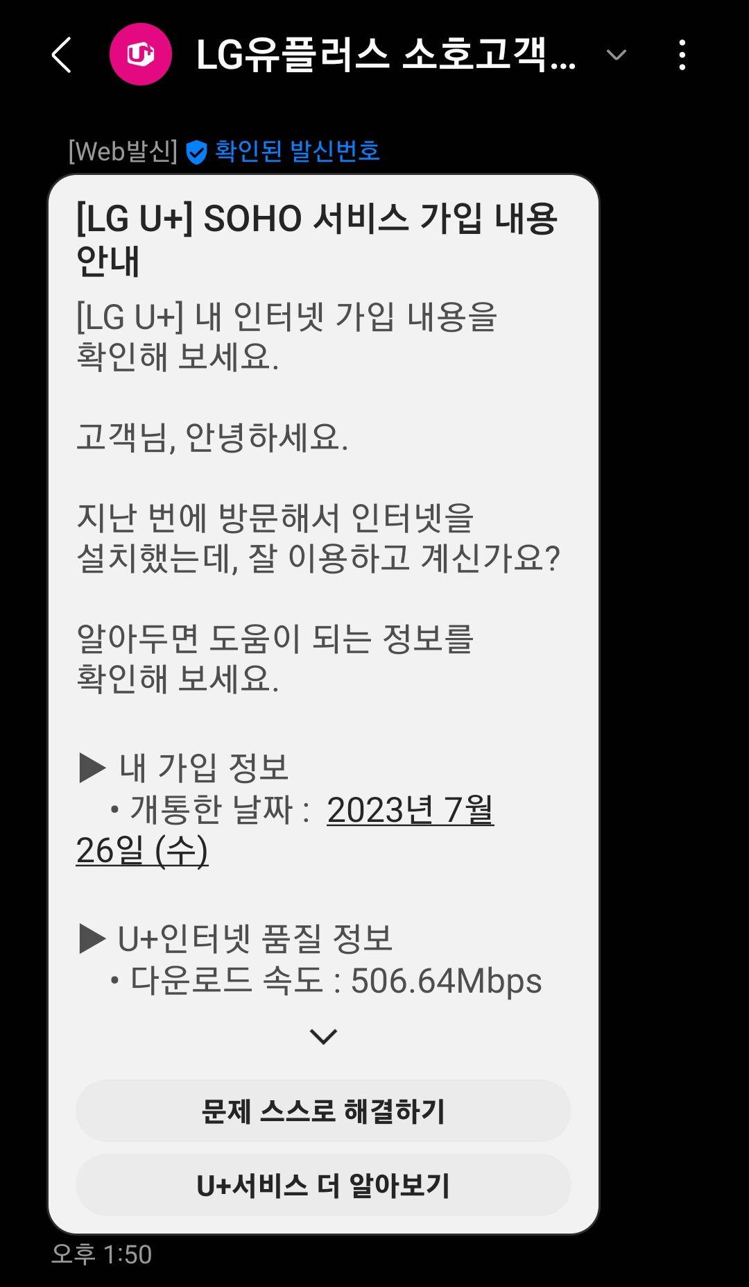 LGU+ 소호 인터넷은 가정용 선을 사용하는 것이 아니라
