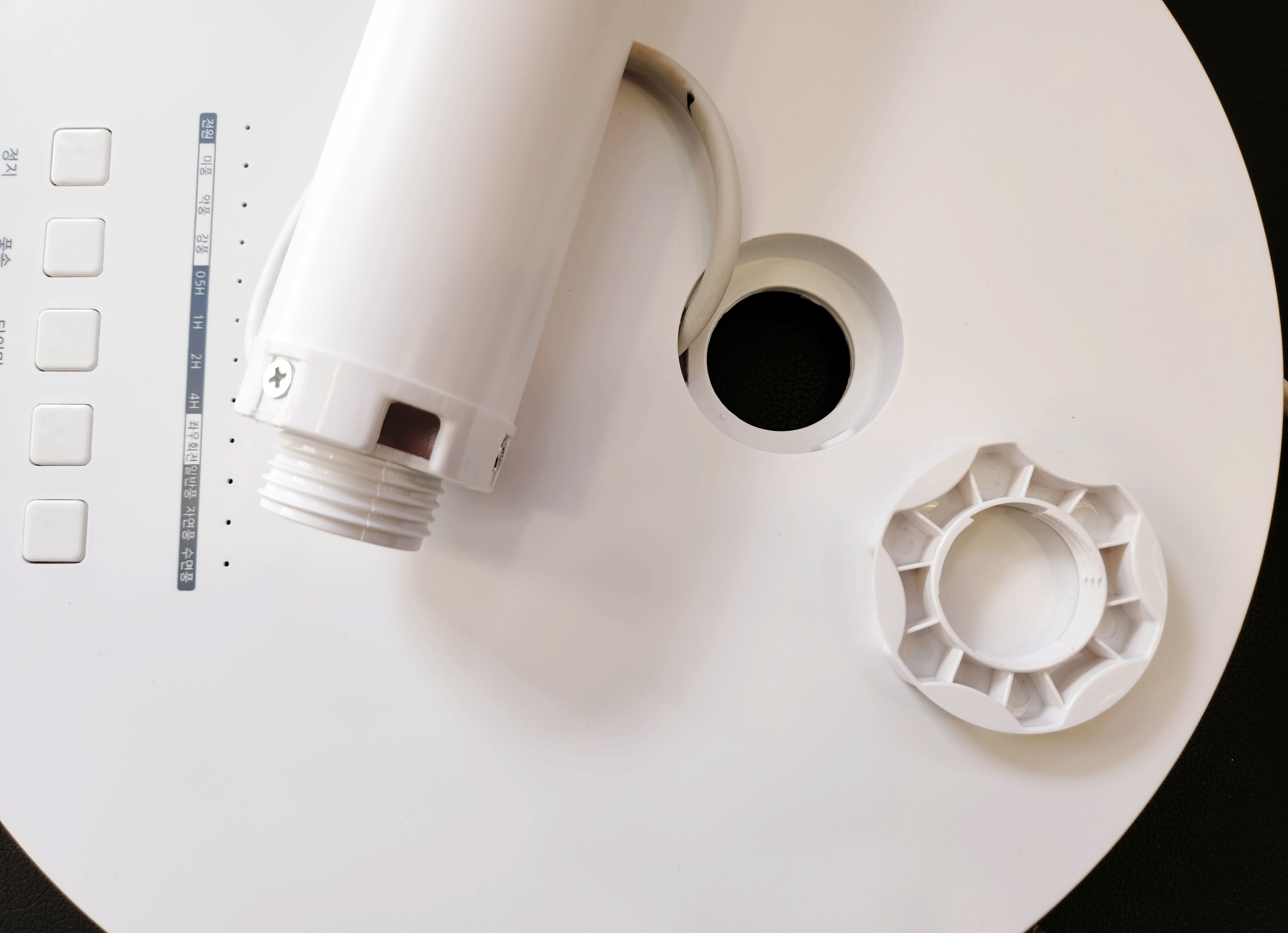 본체 기둥과 하단 리모컨센서와 조작버튼들이 있는 밑판