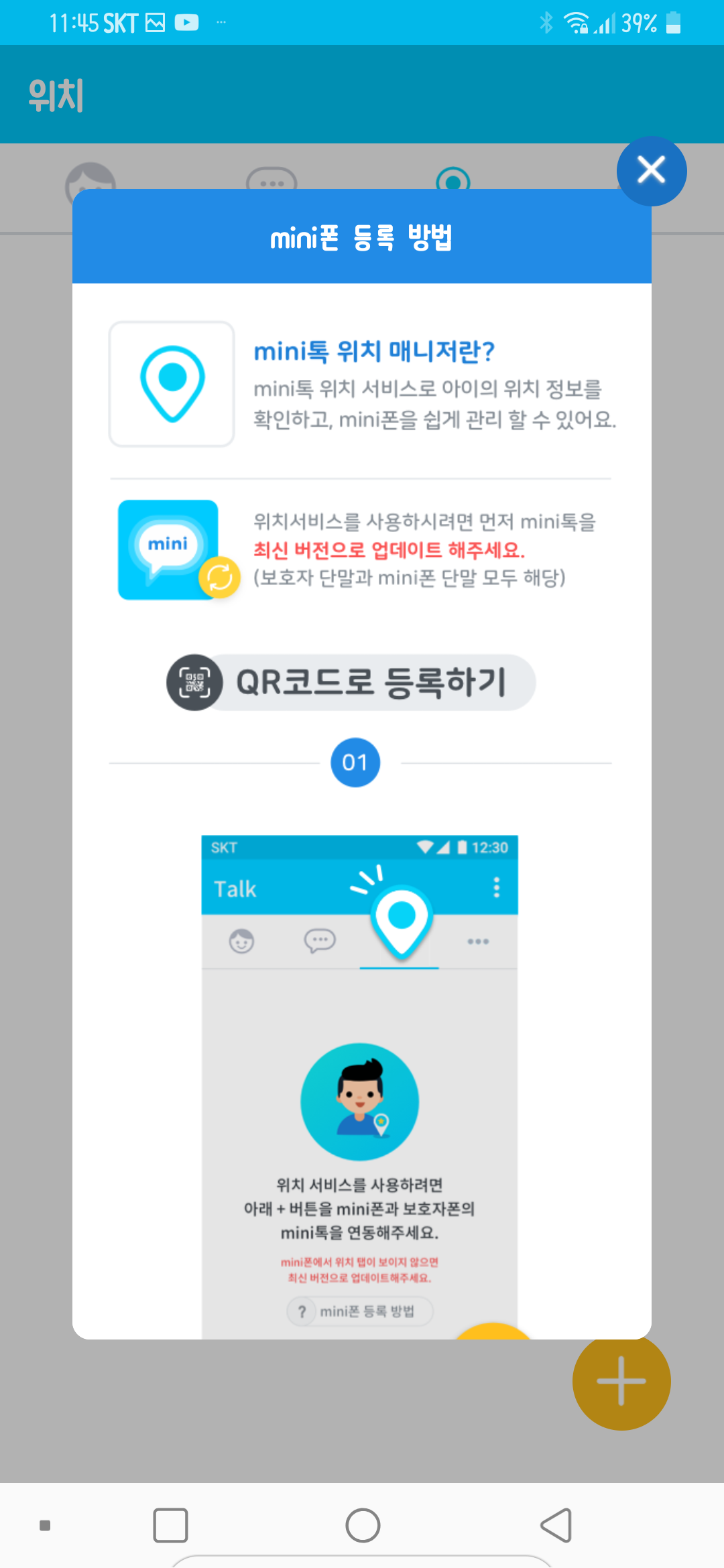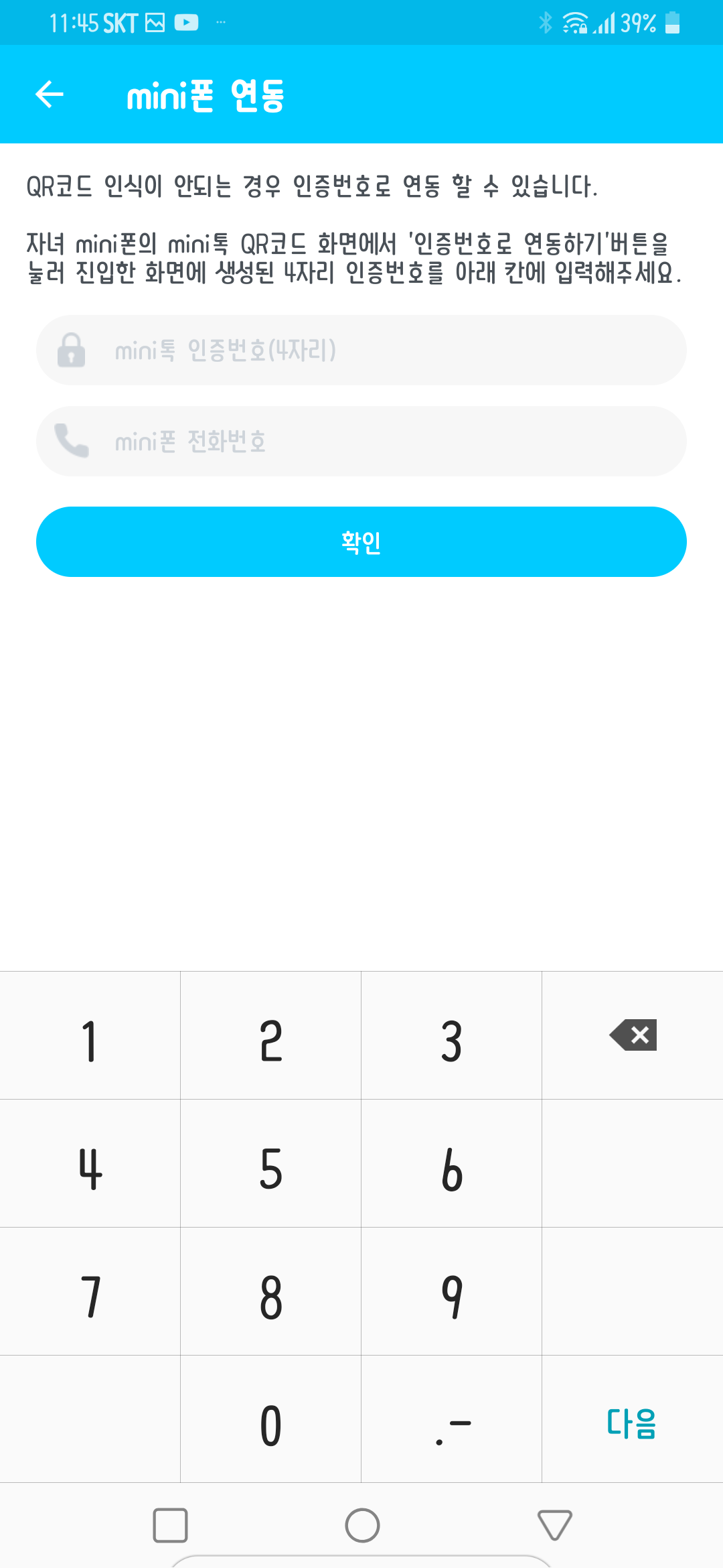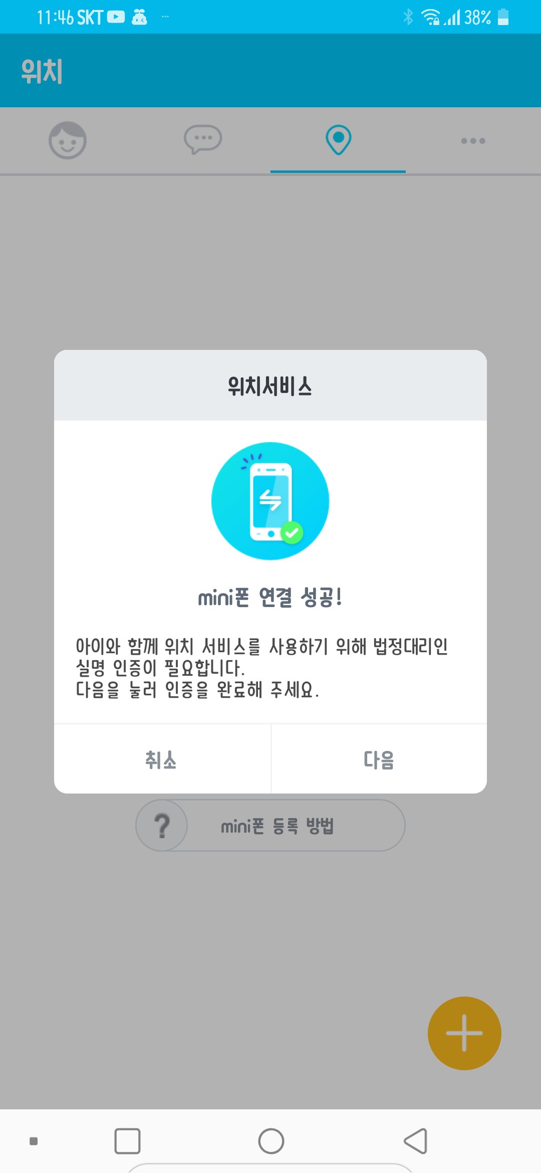 아래 스크리샷은 법정대리인이 아이 미니톡과 연계하여