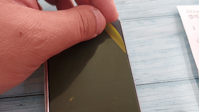 양쪽 다 붙었다 싶으면~ 노란색 보호필름 까지 떼어내면