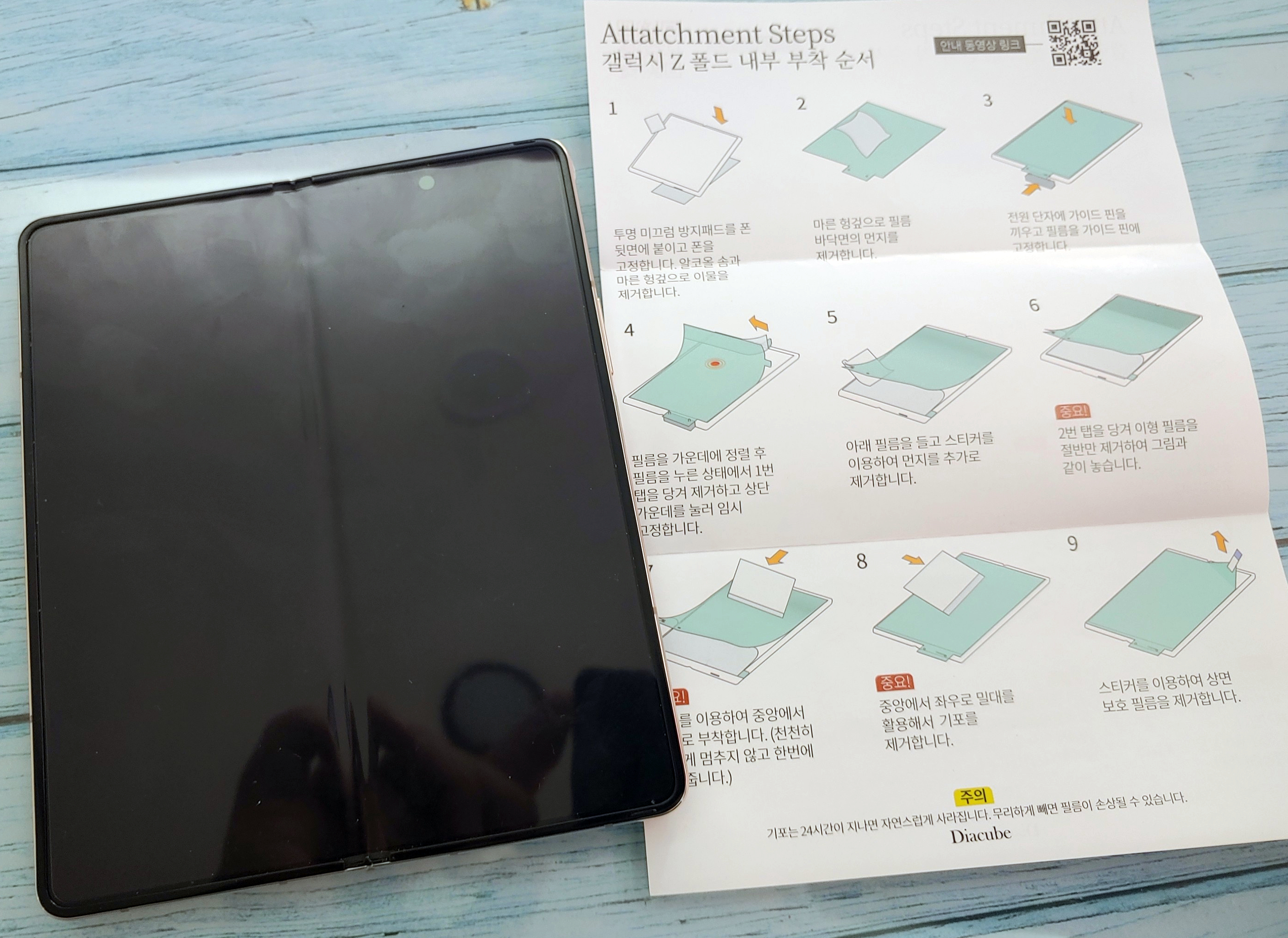 다이아큐브 Z폴드4 무광택 보호필름, 구성품이 알차네요.